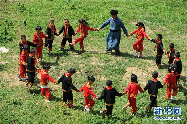 9月5日,貴州畢節(jié)市黔西縣花溪彝族苗族鄉(xiāng)豐坪小學(xué)教師楊朝俊和學(xué)生一起跳民族舞蹈。時至今日,楊朝俊在當(dāng)?shù)亟虝延?4個年頭,曾孤身一人守著豐坪小學(xué)兩個年級的30余名學(xué)生,照顧他們的學(xué)習(xí)和生活。楊朝俊默默堅守的事跡,吸引了一名支教老師前來“搭班”。今年新學(xué)期開學(xué)時,當(dāng)?shù)亟逃块T又選派了一名年輕的特崗教師來到學(xué)校,分擔(dān)教學(xué)工作。新華社發(fā)(楊文斌攝)