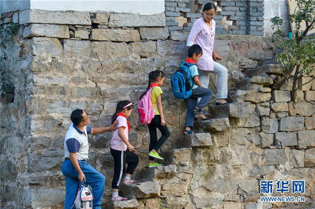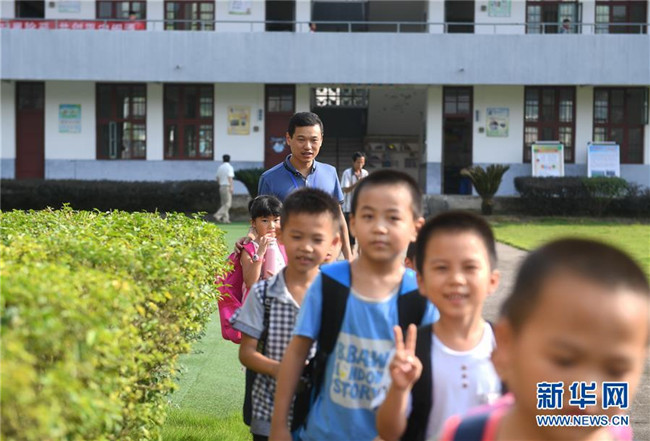 9月6日,福建閩清縣上蓮鄉(xiāng)中心小學(xué)教師張鐘在放學(xué)后送孩子們回家。2006年,“80后”教師張鐘投身鄉(xiāng)村教育事業(yè),主動要求到偏遠(yuǎn)教學(xué)點任教。為了能安心工作,他還動員妻子和父母都搬到上蓮鄉(xiāng)工作生活,幫他一起照顧?quán)l(xiāng)村學(xué)校里的孩子們。十多年來,張鐘扎根鄉(xiāng)村,堅守在教書育人的崗位上。新華社記者 林善傳 攝