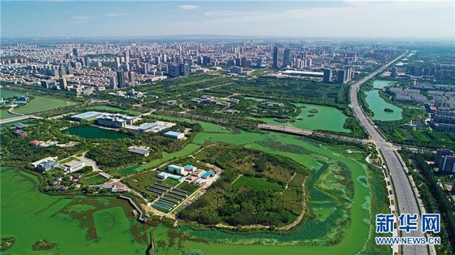寧夏銀川市金鳳區(qū)景色(9月3日無人機拍攝)。 寧夏,地處中國西北腹地。這里的大山、大河、草原、沙漠、湖泊,猶如一幅幅美妙畫卷,讓人流連忘返。 新華社記者 王鵬 攝