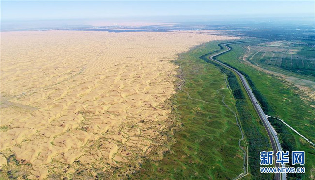 黃河流經(jīng)寧夏中衛(wèi)市騰格里沙漠邊緣(6月26日無人機拍攝)。 寧夏,地處中國西北腹地。這里的大山、大河、草原、沙漠、湖泊,猶如一幅幅美妙畫卷,讓人流連忘返。 新華社記者 王鵬 攝