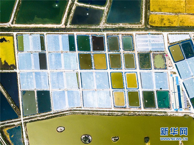 寧夏賀蘭縣藍(lán)灣生態(tài)園南美對蝦養(yǎng)殖基地(9月11日無人機拍攝)。 寧夏,地處中國西北腹地。這里的大山、大河、草原、沙漠、湖泊,猶如一幅幅美妙畫卷,讓人流連忘返。 新華社記者 王建華 攝