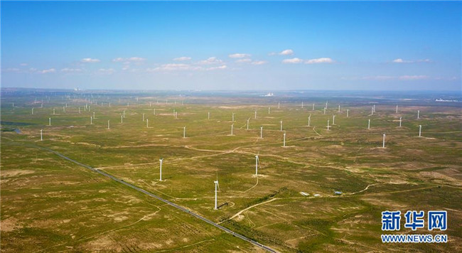 寧夏吳忠市太陽山風(fēng)電場(8月24日無人機拍攝)。 寧夏,地處中國西北腹地。這里的大山、大河、草原、沙漠、湖泊,猶如一幅幅美妙畫卷,讓人流連忘返。 新華社記者 郭緒雷 攝