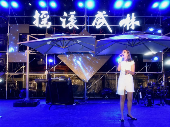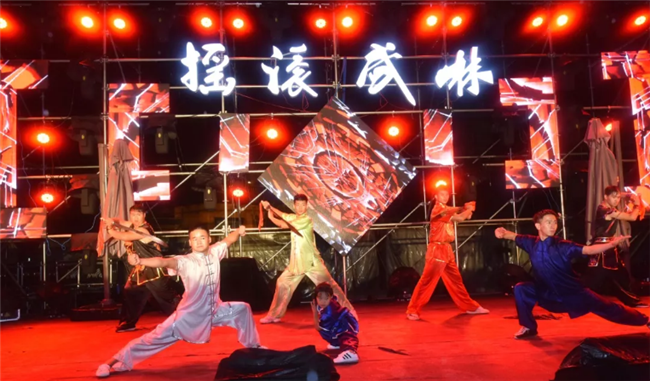 星空音樂(lè)趴于當(dāng)晚18時(shí)30分正式開始,在層巒聳翠中,浩瀚星辰下,由原創(chuàng)搖滾實(shí)效樂(lè)隊(duì)帶來(lái)的動(dòng)感音樂(lè)瞬間點(diǎn)燃全場(chǎng),華旅集團(tuán)營(yíng)銷中心各位美女為大家?guī)?lái)動(dòng)感現(xiàn)代舞,馬超武術(shù)表演隊(duì)伍更是展現(xiàn)了劍、九節(jié)鞭、棍、拳的華夏男兒力量之美,DJ、MC電音律動(dòng),現(xiàn)場(chǎng)聽(tīng)眾更是融入其中,服裝上的熒光粉在夜空中也化作點(diǎn)點(diǎn)星光,與天、地、舞臺(tái)融為一體,撩人電音牽手活力運(yùn)動(dòng),燃爆初秋的第一把火!這是一個(gè)聞所未聞的華山“武林”。