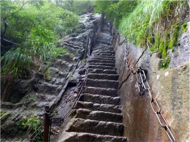 其實(shí),攀爬千尺幢也是如此的感覺。心理上對(duì)于險(xiǎn)要的感受,隨著腳步的向上移動(dòng)而上升著,而當(dāng)你登上千尺幢平臺(tái)的時(shí)候,那種感覺也應(yīng)該像過“驚心”“平心”石一樣,先有懼怕和不安,再有平靜與快樂,那時(shí)的感覺只有興奮與自豪。那種心路的變化歷程其實(shí)就是一種心靈的升華和精神的歷練過程,難道這不是一種特殊的享受嗎?這會(huì)讓人銘記在心,終生難忘。