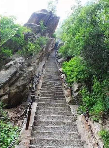 在爬上千尺幢以后,每個(gè)人除了大口的喘氣,就是站在那方平臺(tái)上極目遠(yuǎn)眺。這時(shí),看到的是連綿的山峰和山谷里曾經(jīng)走過的彎彎曲曲的山路,心神便會(huì)為之一振,豪情頓生滿懷。濕透了的衣衫,大汗淋漓的膀子,紅光滿面的臉龐,也許還有酸疼的腰和腿,加上從未有過的心靈的放飛,雖然感覺身體有些困乏,但那是一種極樂無(wú)比的體驗(yàn)。
