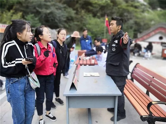 當(dāng)有行動不便的游客游覽時、當(dāng)有游客的手機(jī)丟失時、當(dāng)游客的包掉到懸崖下時,第一時間出現(xiàn)在游客身邊,及時為游客解決困難,此時他們的行動是對游客最舒心的安慰。