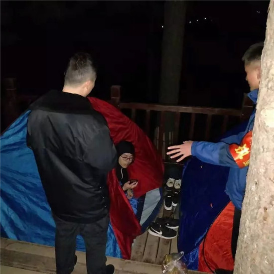 深夜執(zhí)勤人員堅守崗位維護(hù)游覽秩序、主峰區(qū)執(zhí)勤人員勸阻游客遠(yuǎn)離危險地帶,注意夜晚游覽安全