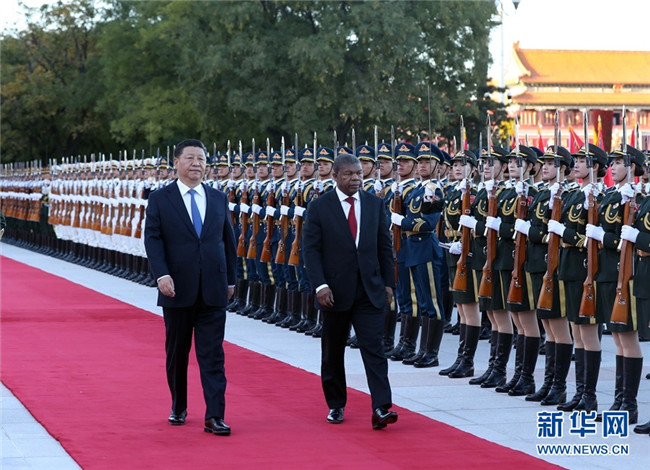 10月9日,國(guó)家主席習(xí)近平在北京人民大會(huì)堂同安哥拉總統(tǒng)洛倫索舉行會(huì)談。這是會(huì)談前,習(xí)近平在人民大會(huì)堂東門外廣場(chǎng)為洛倫索舉行歡迎儀式。 新華社記者姚大偉攝