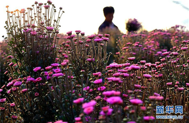 10月9日,在山東省淄博市沂源縣石橋鎮(zhèn)一花卉種植基地,工人在采摘多頭菊。  新華社發(fā)(趙東山 攝)