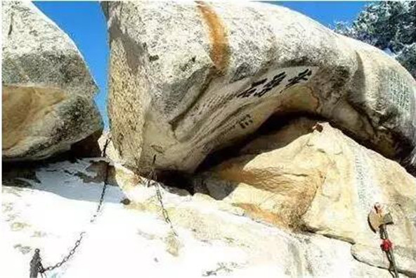 華山文化可謂博大精深,這些鐫刻在神山圣水之間的文字,他們是一個符號,更是一份歷史的活化石。有時(shí)雖寥寥幾筆,卻是一個時(shí)代的銘記,“智取華山”雖然只有四個字,但是它卻讓后人牢牢記住了在這座山上曾經(jīng)發(fā)生的英雄故事。這四個字是劉吉堯2004年來的時(shí)候題的詞,劉吉堯是全國特級戰(zhàn)斗英雄,他在近90歲時(shí)還經(jīng)常華山,這就是智取華山路離北峰最近的那一段路。