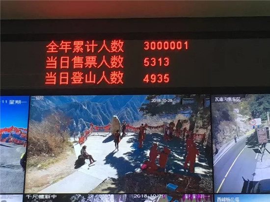 截止2018年10月29 日上午11時43分,華山景區(qū)購票人數(shù)突破300萬人次,與去年同期相比增長60萬人次,增長率25%,創(chuàng)歷史新高。取得這樣喜人的成績,是華旅集團引領企業(yè)發(fā)展新航向、上下求索的碩果,是票務服務中心及兄弟單位密切配合,扎實工作,共同努力的結果,是干部職工上下一心,不辭辛勞,真抓實干的效果,是海內(nèi)外游客對華山景區(qū)優(yōu)美景色,優(yōu)質(zhì)服務認可的成果。