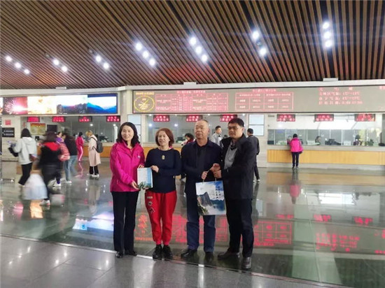 為此,票務中心根據(jù)集團公司領導安排,組織了向第3000001位幸運游客代表劉姓游客贈送華山旅游紀念品的活動,活動現(xiàn)場票務中心主任李泉向該名游客贈送了代表華山四季美景的集郵冊一套和《華山楹聯(lián)》書籍一本,劉姓游客非常高興,表示華山景美,人更美,下次還會帶親朋好友游覽。
