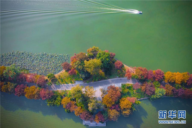 這是南京玄武湖景區(qū)秋景(10月30日無人機(jī)拍攝)。 金秋時(shí)節(jié),神州大地層林盡染,美不勝收。 新華社發(fā)(蘇陽 攝)