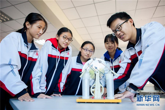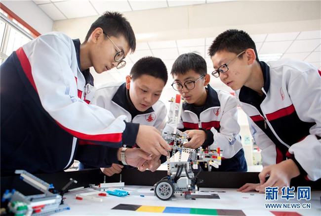 近年來(lái),河北武邑中學(xué)開(kāi)設(shè)機(jī)器人、航模、科技實(shí)驗(yàn)等趣味科普課程,激發(fā)學(xué)生的創(chuàng)新創(chuàng)造意識(shí)和科學(xué)探索精神,讓學(xué)生近距離感受科技魅力。 新華社記者 朱旭東 攝