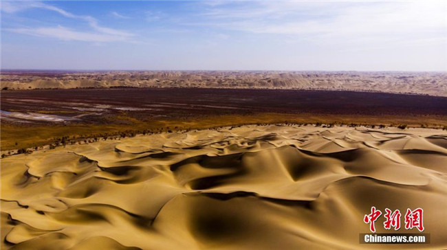羅布湖與沙漠交匯處猶如入海口。李飛 攝