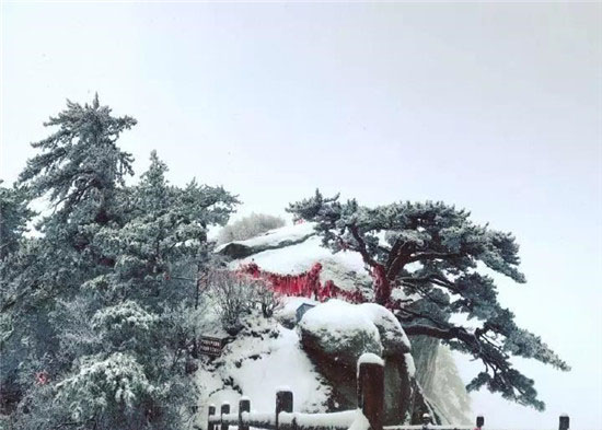 華山自古稱奇,而在這一季中華山自然景觀則更為奇特,“雪海”、“雪松”、“冰掛”、“冰瀑”、“冰雕”等景觀,為華山的美增添了無窮的魅力,如果說夏季的華山如水彩般鮮艷秀美,那冬日的華山就如水墨般濃墨厚重了。