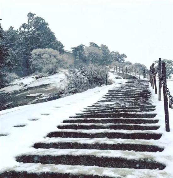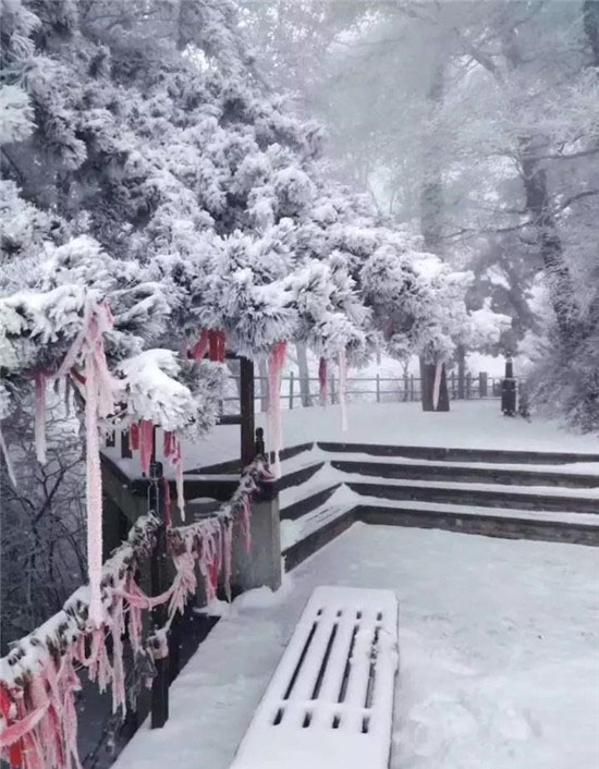 冬季的華山少了夏季的喧鬧,白雪與松檜、陽光與山石就是它最美的景象。每年12月至次年3月是華山的雪季,而前兩天華山已經(jīng)提前下過雪了,整個山體被白雪覆蓋,樹木、巖石、道觀上都披上一層厚厚的棉衣。走進華山仿佛是走進了一個純白的圣潔之地,白色的花崗巖、白色的雪花、白色的樹木…… 在華山,白色也是如此的浪漫唯美。