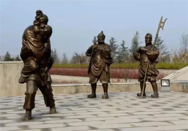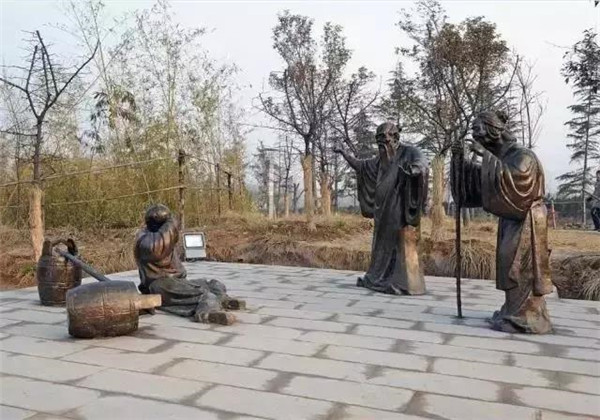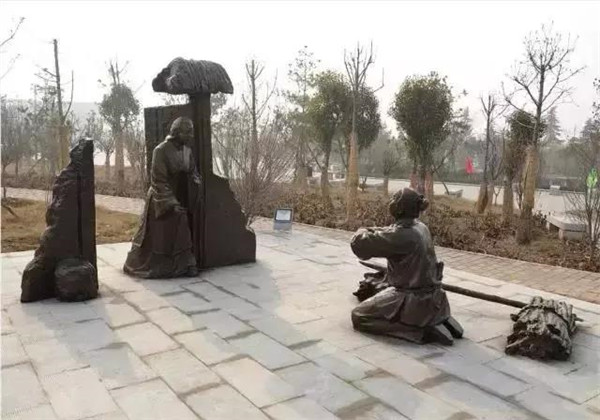 董永,相傳為東漢時(shí)期千乘人,年少喪母,因避兵亂遷居安陸。其后父親亡故,董永賣身至一富家為奴,換取喪葬費(fèi)用。上工路上,于槐蔭下遇一女子,自言無家可歸,二人結(jié)為夫婦。女子以一月時(shí)間織成三百匹錦緞,為董永抵債贖身,返家途中,行至槐蔭,女子告訴董永:自己是天帝之女,奉命幫助董永還債。言畢凌空而去。因此,槐蔭改名為孝感。