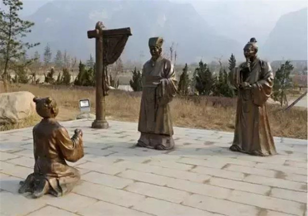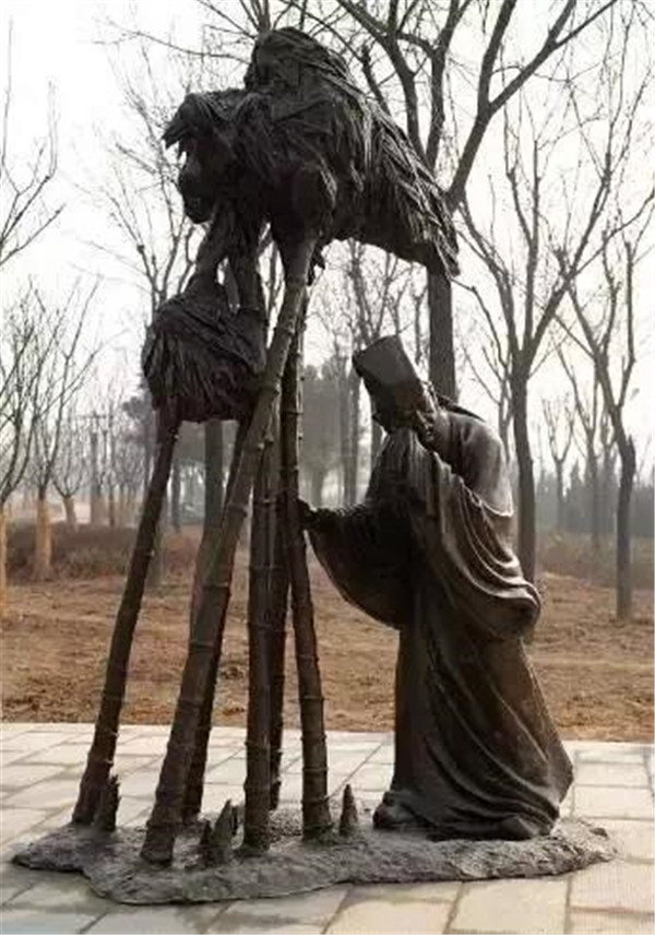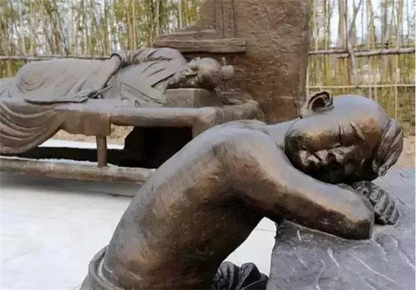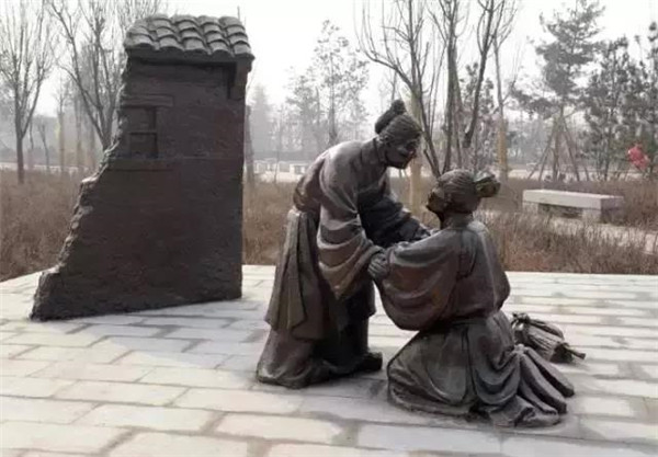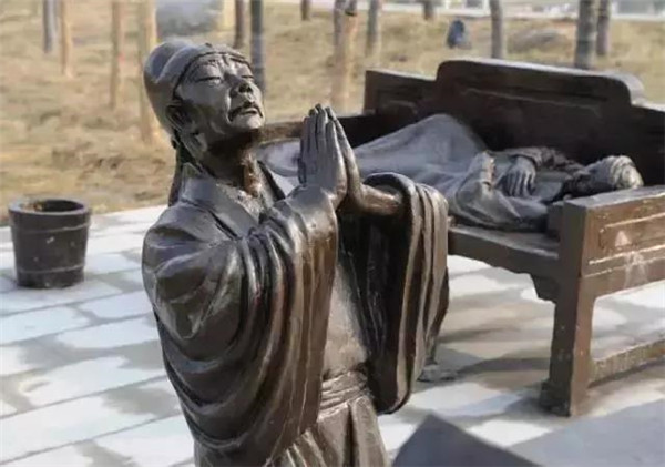 丁蘭,相傳為東漢時(shí)期河內(nèi)人,幼年時(shí)父母雙亡,他經(jīng)常思念父母的養(yǎng)育之恩,于是用木頭刻成雙親的雕像,事之如生,凡事均和木像商議,每日三餐敬過雙親后自己方才食用,出門前一定稟告,回家后一定面見,從不懈怠。久之,其妻對木像便不太恭敬了,竟好奇地用針刺木像的手指,而木像的手指居然有血流出。丁蘭回家見木像眼中垂淚,問知實(shí)情,遂將妻子休棄。