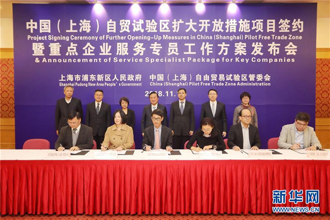 11月19日,上海自貿(mào)區(qū)擴大開放措施項目簽約會舉行。 在商務(wù)部和國家發(fā)展改革委的指導(dǎo)下,2013年9月上海自貿(mào)區(qū)發(fā)布中國首份外商投資準入負面清單,其中列明了190條外商投資特別管理措施。2018年,最新版的負面清單管理措施已減少至45條。 上海市商務(wù)委副主任申衛(wèi)華說,根據(jù)相關(guān)管理辦法,政府對負面清單以外的外商投資企業(yè)和項目實行備案管理,外商投資企業(yè)備案的申報、審核、結(jié)果告知全程網(wǎng)上辦理,辦理時間從8個工作日減少到1個工作日。 統(tǒng)計顯示,截至2018年6月,上海自貿(mào)區(qū)掛牌后新設(shè)外商投資企業(yè)8696個,吸引合同外資1102.4億美元,實到外資221.33億美元,98%以上是通過備案方式設(shè)立。 新華社記者方喆攝