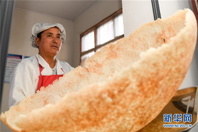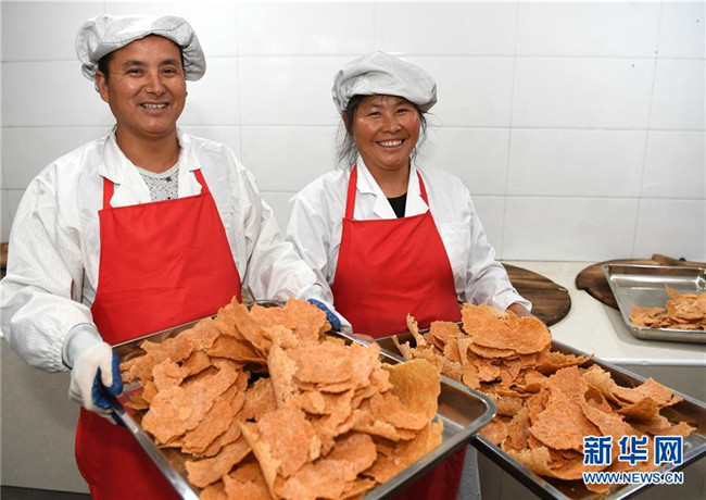 今年49歲的汪明祥和47歲的姚新花是安徽省涇縣黃村鎮(zhèn)沙元村的一對農(nóng)民夫妻。2013年,汪明祥突發(fā)疾病花光了家里的積蓄,并喪失了一定的勞動能力。2014年,汪明祥一家被確定為建檔立卡貧困戶。為了靠自己的雙手實現(xiàn)脫貧,汪明祥和妻子姚新花在家里開始生產(chǎn)手工鍋巴,雖然收入不高,但是經(jīng)濟狀況慢慢好轉(zhuǎn)起來,于2016年順利實現(xiàn)脫貧。 脫貧后的夫妻倆開始琢磨如何進一步發(fā)展自家的手工鍋巴生意。今年,汪明祥和妻子姚新花利用當?shù)胤鲐毿☆~貸款和自籌資金創(chuàng)辦的強源鍋巴廠投產(chǎn)。由于口味地道,價格不高,汪明祥家的鍋巴受到市場的歡迎,平均每天生產(chǎn)鍋巴50余斤,日均銷售額400多元。“不等不靠,甩窮帽,我們夫妻倆靠手藝脫了貧,也有信心實現(xiàn)致富。”汪明祥說。新華社記者 劉軍喜攝