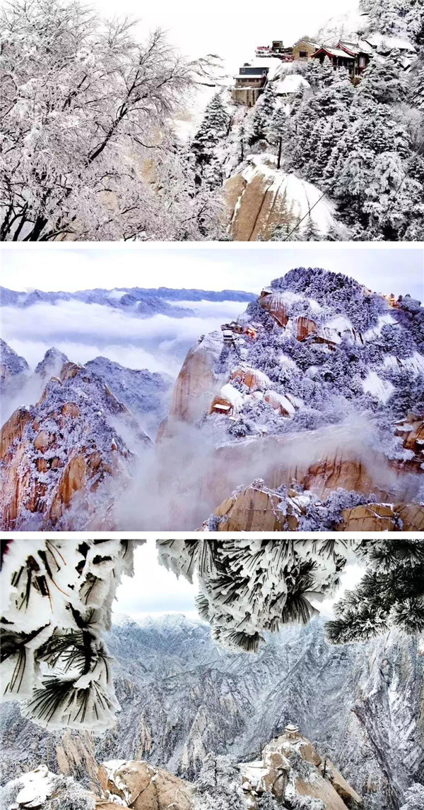 華山四季景色神奇多變,云華山、霧華山、雪花山,華山從山麓到山頂氣溫直線遞減,山上年平均氣溫6.8度。