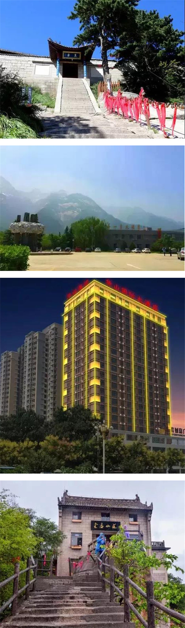 山上:北峰云臺(tái)山莊、五云峰飯店、金天山莊東峰飯店、金天山莊西峰飯店;