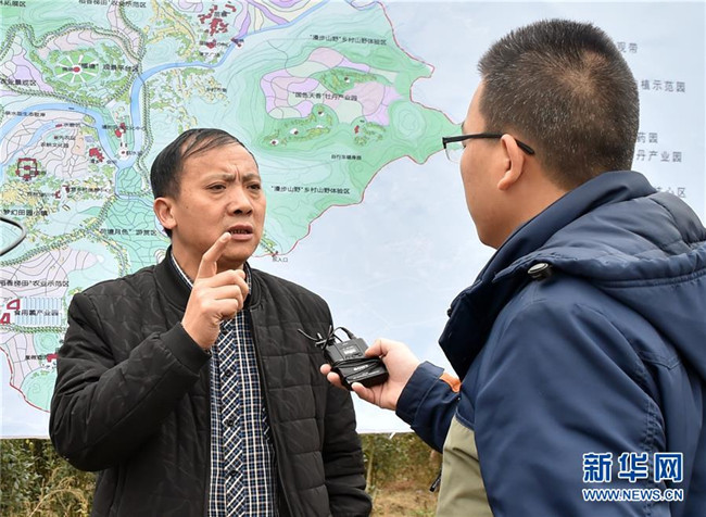 貴州安順平壩區(qū)塘約村村支書左文學(xué)(左)接受新華社記者采訪(2016年12月14日攝)。新華社記者李賀攝