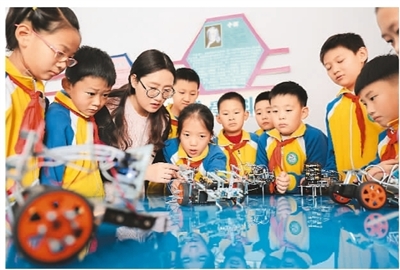 河北省承德市營(yíng)子區(qū)濱河路小學(xué)將機(jī)器人編程課引入學(xué)校,安排專(zhuān)業(yè)教師指導(dǎo)學(xué)生進(jìn)行機(jī)器人編程、機(jī)器人設(shè)計(jì)等學(xué)習(xí),讓學(xué)生零距離感受科技的魅力,激發(fā)創(chuàng)新意識(shí)和科學(xué)探索精神。圖為11月27日學(xué)校教師指導(dǎo)學(xué)生練習(xí)操作機(jī)器人。劉環(huán)宇攝(新華社發(fā))