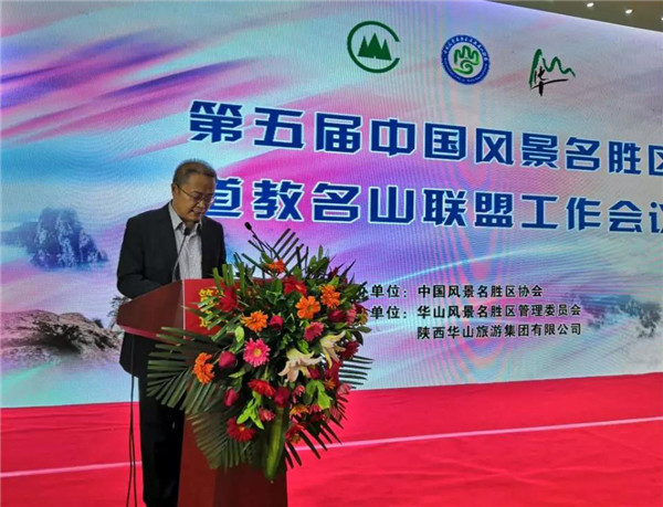 華山景區(qū)黨工委副書記、華管委常務(wù)副主任郭文平代表道教名山聯(lián)盟做總結(jié)發(fā)言。