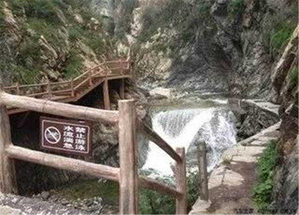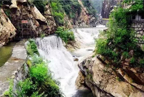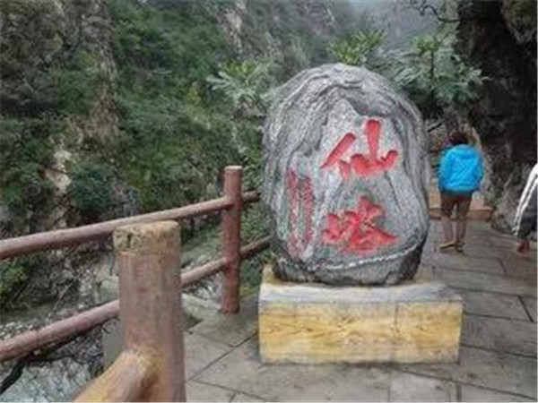 仙峪,又名車(chē)箱谷,在華山峪西,與華山峪僅一嶺之隔。傳說(shuō)古時(shí)黃初平、黃初起弟兄在此牧羊成仙,因而得名。仙峪深五十余里,峪道窄狹清幽,山路崎嶇蜿蜒,河流湍急,山石險(xiǎn)峻,多處路段鑿崖,加棧凌空通過(guò)。進(jìn)峪五里處,有斜嶺橫阻,令人有谷盡路絕之感,然越嶺橫度,又平添柳暗花明的情趣。