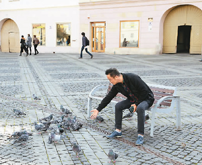 中國游客在羅馬尼亞錫比烏廣場休閑。新華社記者陳 進攝 |