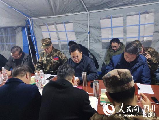四川省應急管理廳廳長段毅君在宜賓市興文縣“12.16”5.7級地震抗震救災指揮部指導抗震救災工作。(圖片由省應急管理廳提供)