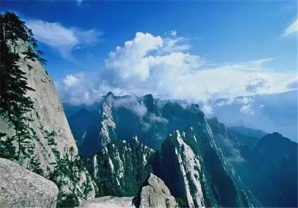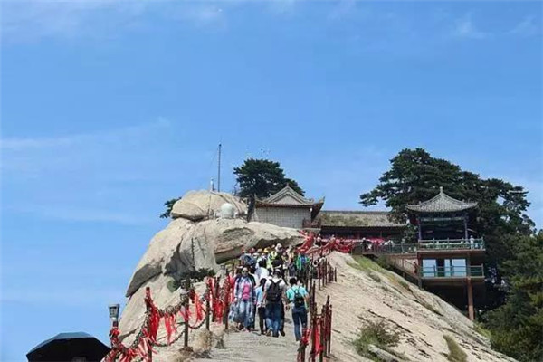 西峰海拔2082.6米,華山主峰之一,因位置居西得名。又因峰巔有巨石形狀好似蓮花瓣,古代文人多稱其為蓮花峰、芙蓉峰。袁宏道在他的《華山》中記述:“石葉上覆而橫裂”;徐霞客《游太華山日記》中也記述:“峰上石聳起,有石片覆其上,如荷花。”李白詩中有“石作蓮花云作臺”句,也當(dāng)指此石。