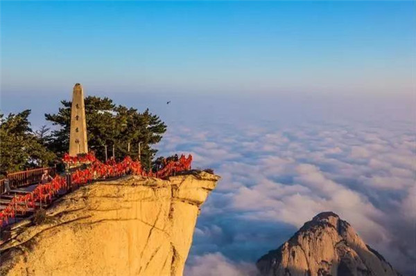 南峰海拔2154.9米,是華山最高主峰,也是五岳最高峰,古人尊稱它是“華山元首”。登上南峰絕頂,頓感天近咫尺,星斗可摘。舉目環(huán)視,但見群山起伏,蒼蒼莽莽,黃河渭水如絲如縷,漠漠平原如帛如綿,盡收眼底,使人真正領(lǐng)略華山高峻雄偉的博大氣勢,享受如臨天界,如履浮云的神奇情趣。