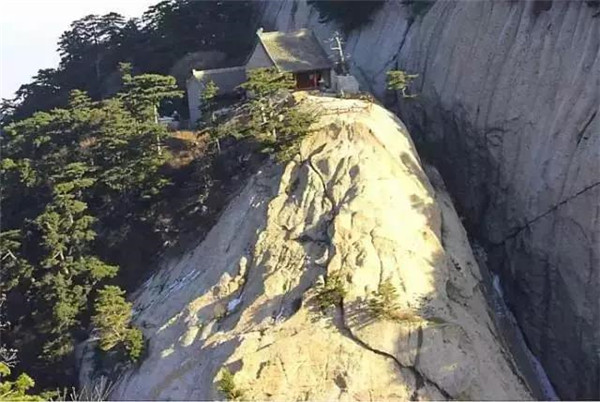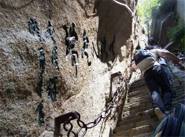 魏晉南北朝時,還沒有通向華山峰頂?shù)牡缆?。直到唐朝,隨著道教興盛,道徒開始居山建觀逐漸在北坡沿溪谷而上開鑿了一條險道,形成了"自古華山一條路"。