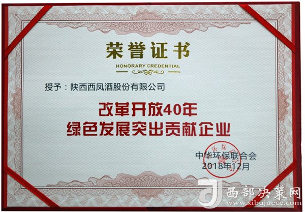 近日,在中華環(huán)保聯(lián)合會(huì)組織的“紀(jì)念改革開放40年中國企業(yè)綠色發(fā)展成就主題活動(dòng)”中,陜西西鳳股份公司因在綠色發(fā)展、生態(tài)文明、環(huán)境保護(hù)、節(jié)能減排等方面的突出成績,榮獲改革開放40年“綠色發(fā)展突出貢獻(xiàn)企業(yè)”殊榮。標(biāo)志著該公司在實(shí)施綠色發(fā)展戰(zhàn)略、生產(chǎn)綠色產(chǎn)品、使用綠色技術(shù)等方面的卓越成果得到國家環(huán)保部門的充分肯定,達(dá)到了企業(yè)經(jīng)濟(jì)效益、社會(huì)效益、環(huán)境保護(hù)效益的有機(jī)統(tǒng)一。