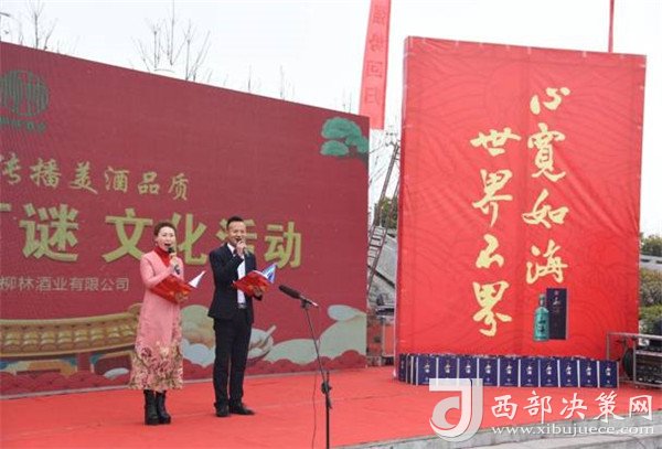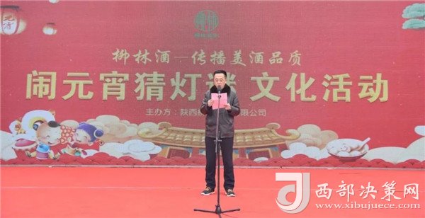 陜西柳林酒業(yè)有限公司副總經(jīng)理周峰發(fā)表講話并向鳳翔父老送上新春祝福和節(jié)日的問(wèn)候。“三陽(yáng)開(kāi)國(guó)泰,美哉柳林酒。今天是正月十五,首先我代表柳林酒業(yè)董事長(zhǎng)付小銅先生、總經(jīng)理柳林先生及全體員工給現(xiàn)場(chǎng)的父老鄉(xiāng)親、朋友們拜個(gè)晚年,祝各位家庭好、事業(yè)好、身體好心情好、運(yùn)氣好、福氣好、財(cái)氣好、愛(ài)情好、朋友好、新的一年一切都好!柳林酒業(yè)主辦的以傳播柳林美酒品質(zhì)為主題的“鬧元宵有獎(jiǎng)猜燈謎文化活動(dòng)”,在此,對(duì)前來(lái)的各位父老鄉(xiāng)親,各界朋友表示衷心的感謝。本次猜謎活動(dòng)獎(jiǎng)品總價(jià)值15萬(wàn)元,共設(shè)1000條謎語(yǔ),只要猜中謎底,關(guān)注“柳林酒業(yè)”,即可獲得獎(jiǎng)品?,F(xiàn)場(chǎng)更有國(guó)家級(jí)評(píng)酒大師親臨現(xiàn)場(chǎng),品柳林美酒,共同傳播美酒文化和歌舞表演環(huán)節(jié),相信大家一定會(huì)不虛此行,度過(guò)一個(gè)難忘的元宵佳節(jié)。