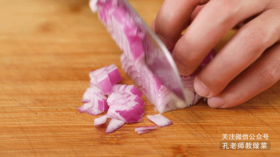 3.香菇、洋蔥切丁備用。(干香菇比新鮮香菇會更香一些,使用之前提前2小時用溫水泡發(fā)。)