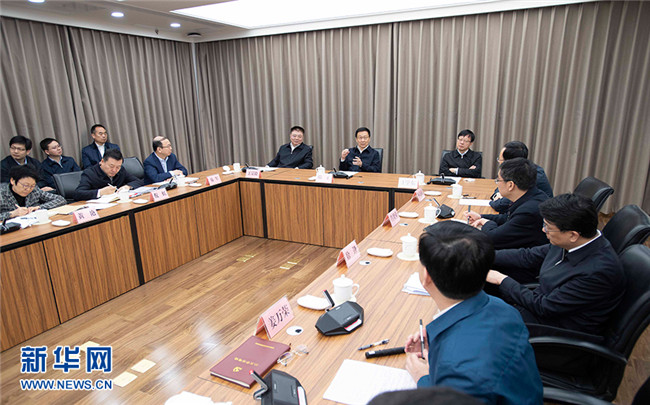 3月18日,中共中央政治局常委、國務(wù)院副總理韓正到住房和城鄉(xiāng)建設(shè)部調(diào)研并主持召開座談會。 新華社記者 李濤 攝