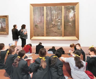 在墨爾本當(dāng)?shù)氐拿佬g(shù)館,孩子們圍坐在一起,聽(tīng)老師講解畫(huà)作。