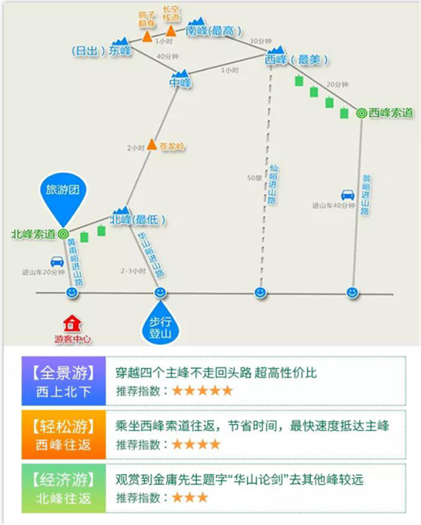 華山導(dǎo)覽(索道線路)示意圖