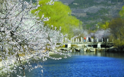 21日,北京植物園曹雪芹紀念館西側(cè)的山桃花溪景區(qū)進入最佳觀賞期。本報記者 吳鏑攝