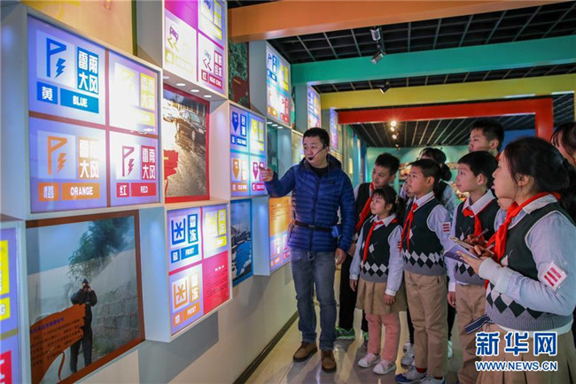 當(dāng)日,安徽省合肥市合作化南路社區(qū)組織第六十七中學(xué)小學(xué)部學(xué)生來到市氣象科普館,學(xué)習(xí)氣象科普知識,迎接3月23日世界氣象日的到來。 新華社記者 曹力 攝