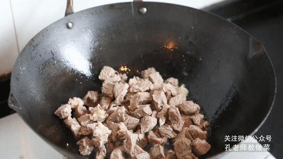 6.倒入牛腩塊,加一大碗清水,調(diào)入白糖和鹽,大火煮開后轉(zhuǎn)小火煮約30分鐘,煮至用筷子輕易戳透牛腩即可。
