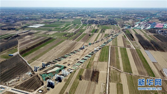 這是京雄城際鐵路施工現(xiàn)場(chǎng)(3月20日無(wú)人機(jī)拍攝)。新華社記者 楊世堯 攝