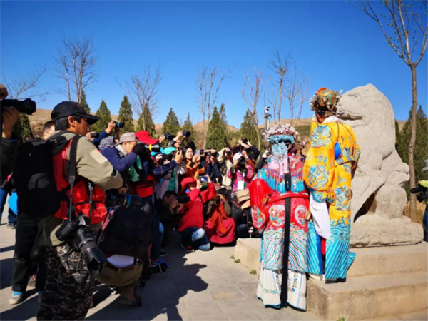 上午眾多攝影愛好者們齊聚蒲城泰陵景區(qū)大唐梨園廣場,進行以戲曲表演為主題一場的拍攝……