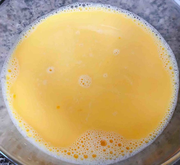 6.菠菜放入蛋液中再放入香油、鹽和味精攪拌均勻入味