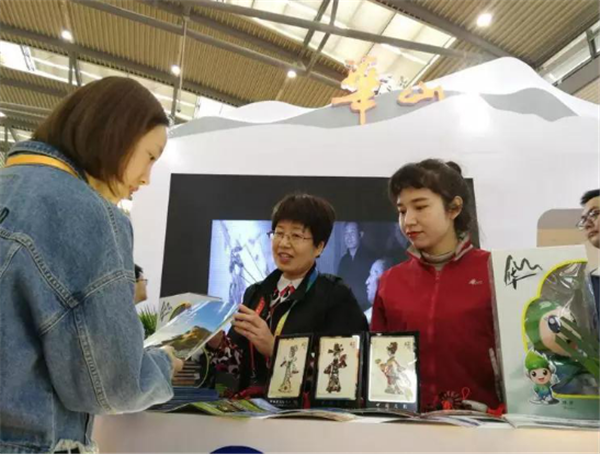 會上,華山管委會常務(wù)副主任郭文平、華山管委會黨工委委員張永江、華山管委會文物旅游處副處長王領(lǐng)娣一行來到展臺視察工作,并在現(xiàn)場與市民互動,郭文平主動當(dāng)起了華山講解員,為前來咨詢的市民答疑解惑,宣傳華山,贈送禮物。