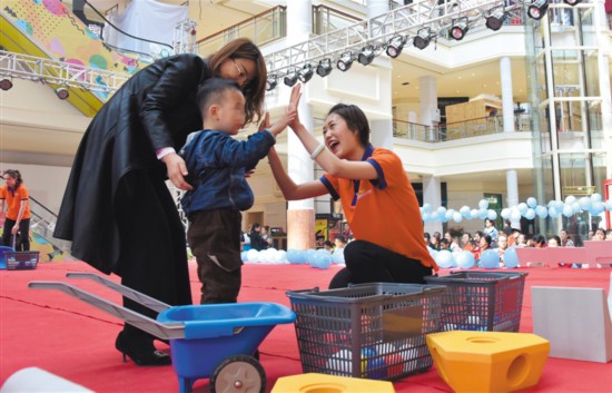 4月2日,早教老師與自閉癥患兒家庭協(xié)作完成互動(dòng)游戲。當(dāng)日是第十二個(gè)“世界自閉癥關(guān)注日”,圍繞今年的主題“消除誤區(qū),倡導(dǎo)全納”,銀川市文明辦、殘聯(lián)等單位聯(lián)合開展“藍(lán)色行動(dòng),愛不孤單”志愿服務(wù),通過宣講、捐贈(zèng)、游戲等方式,倡導(dǎo)人們尊重、愛護(hù)自閉癥患兒,助其融入社會(huì)大家庭?!∮浾?白茹 攝